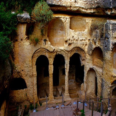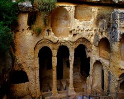 | Beşikli Mağara ; Samandağı Çevlik köyünde deniz kenarında 300 hektarlık alana yayılan “Seleukeia pieria” yada bir diğer söyleyişle “Pieria’ daki Seleukeia” antik kentinin en önemli kalıntılarından biri olan Beşikli mağara tamamen kayaya oyulmuş mezar kompleksidir. 18. Ve 19. Yüzyıl seyyahlarınca seyahat kitaplarında krallar Mezarı olarak tanımlanmış W.Barlett tarafından gravülleri çizilmiştir. Mezar odasının bulunduğu alan eski çağlarda ölüler şehri olarak adlandırılan bir nekropol alanı olarak düzenlenmiştir. | |